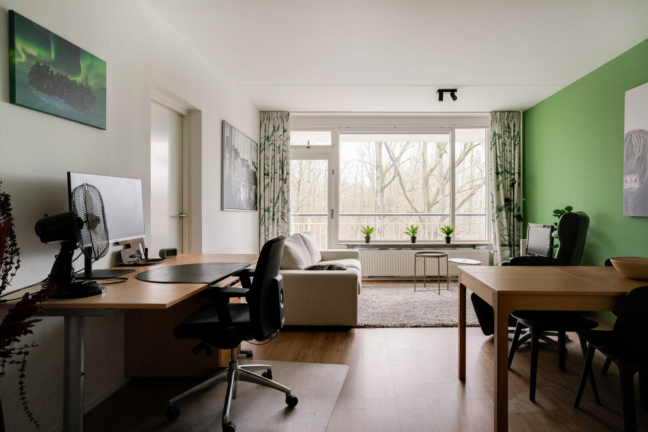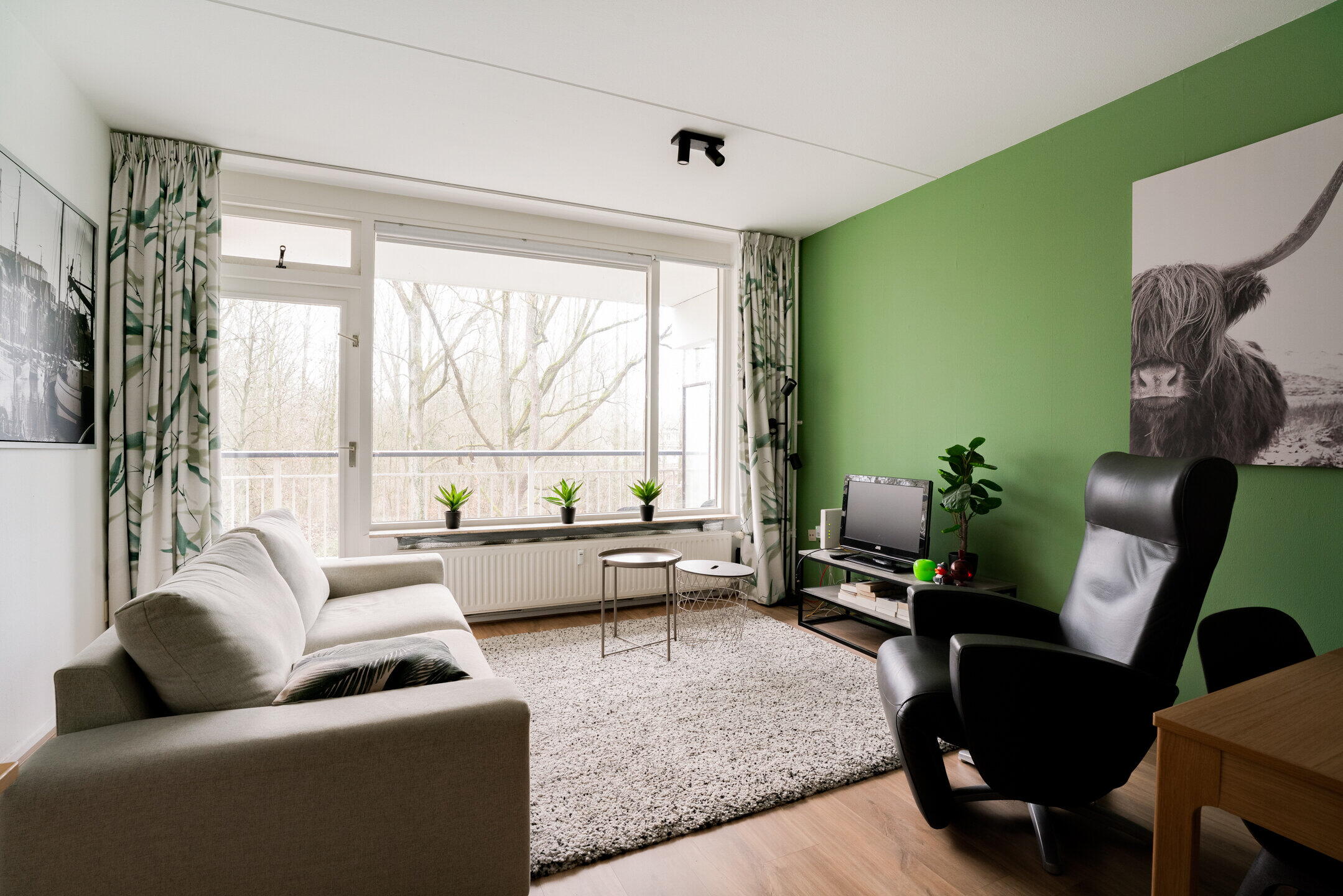 Dankzij de grote raampartijen is de woning lekker licht en biedt het balkon een prachtig uitzicht over de waterpartij en het omliggende groen.