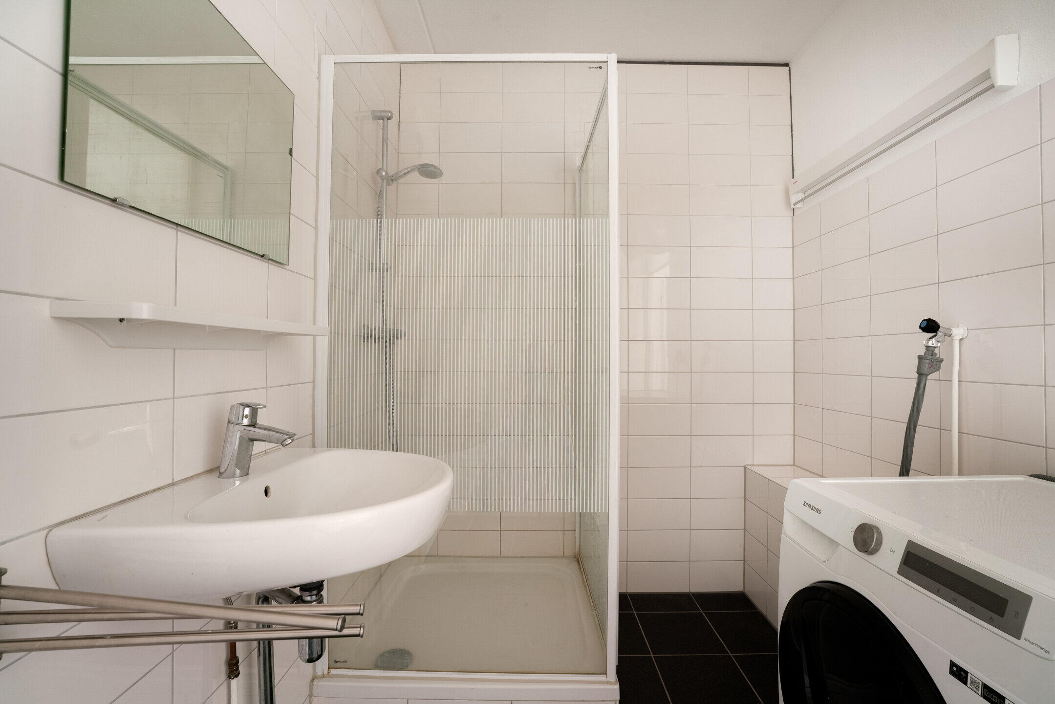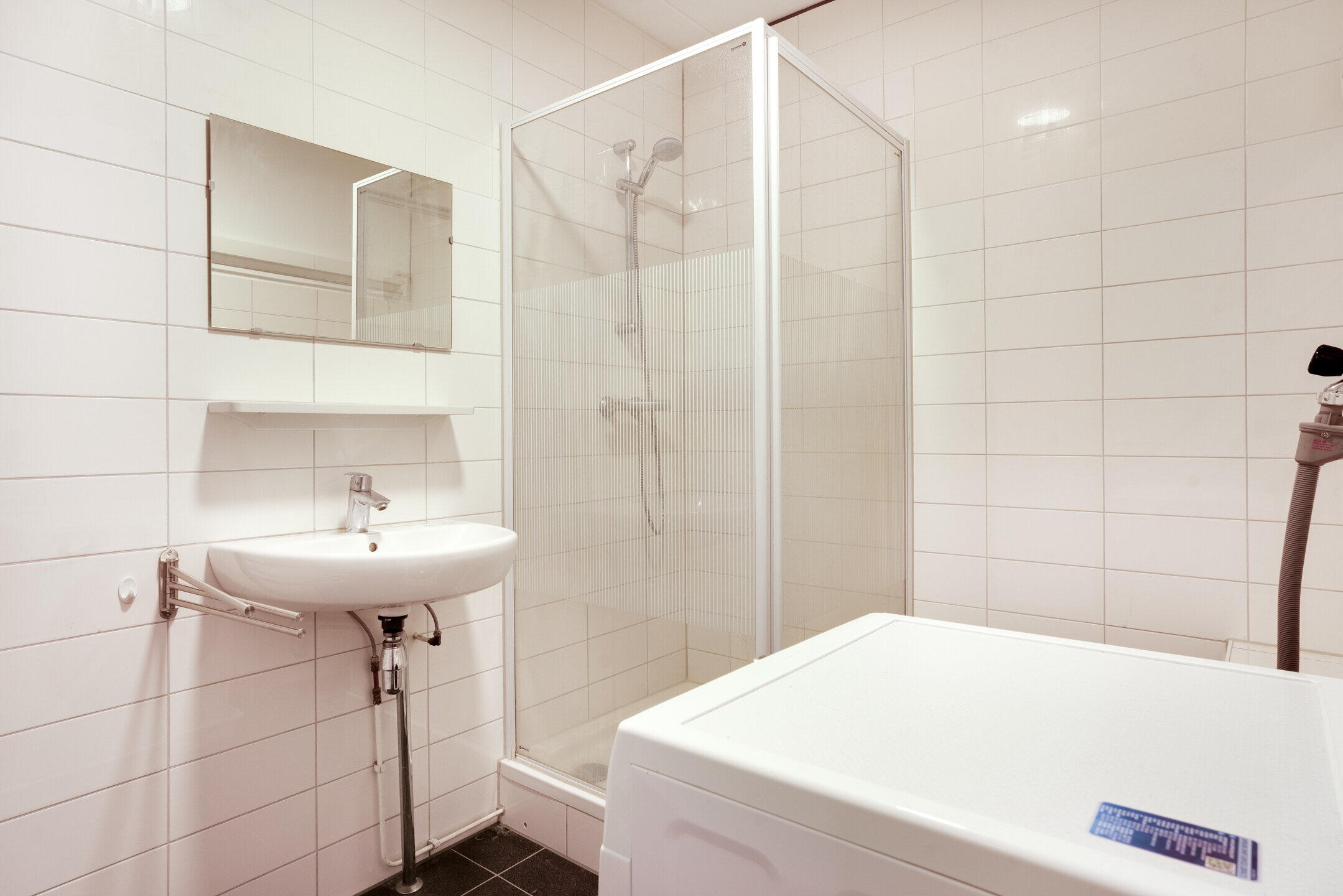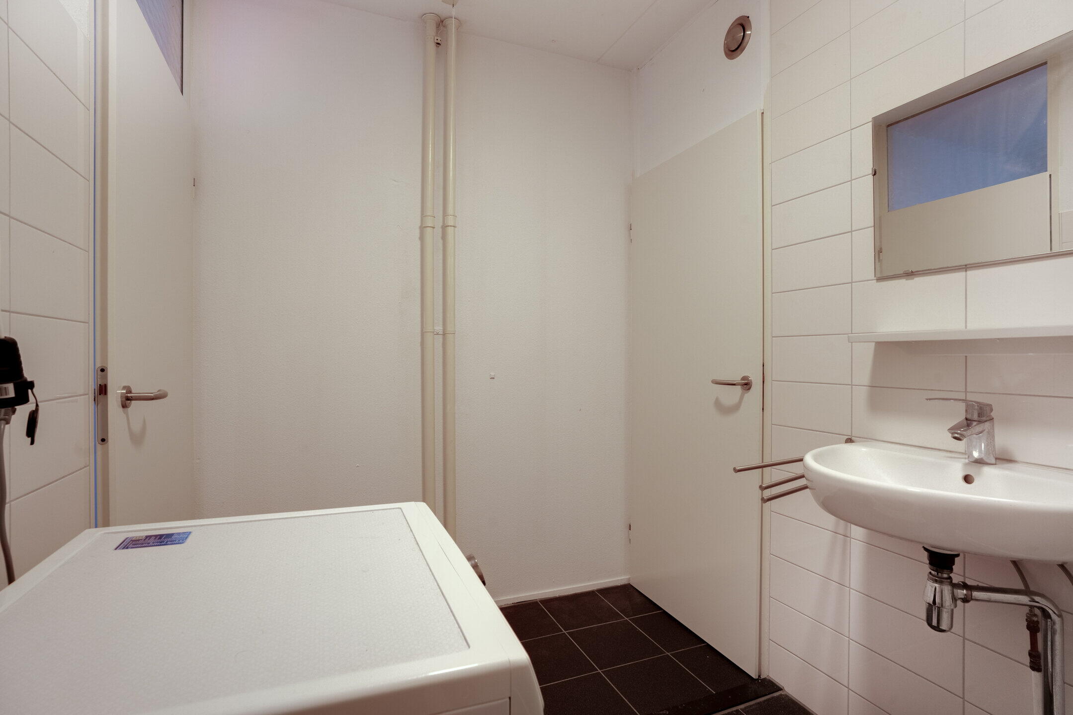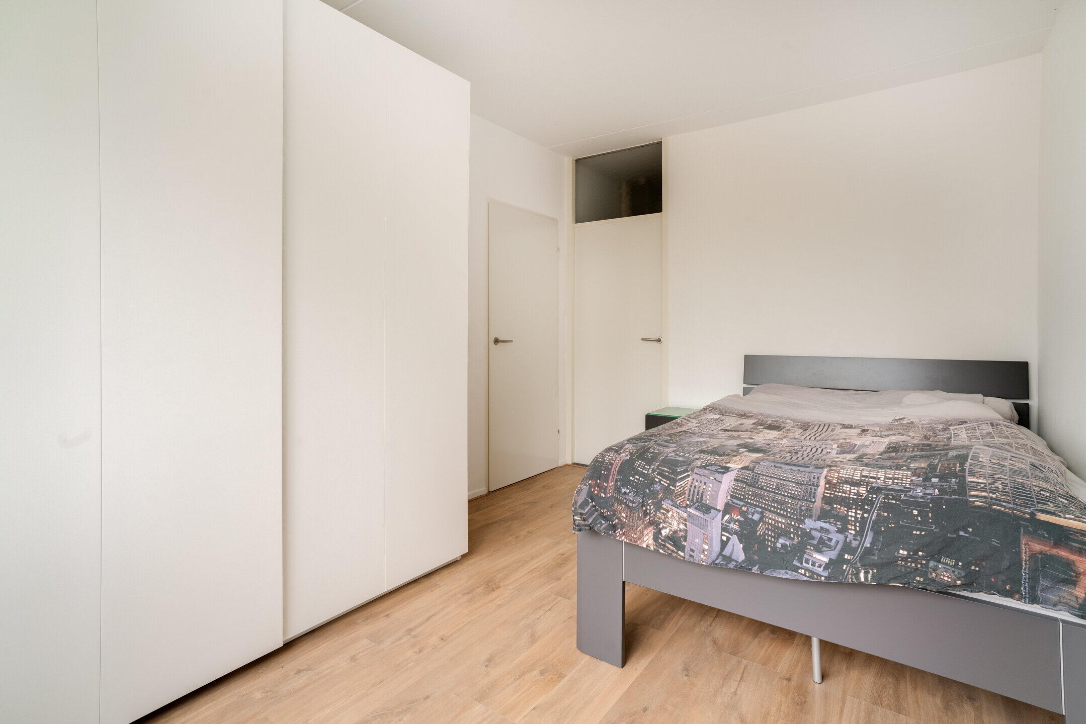 De slaapkamer heeft een royaal formaat en biedt voldoende ruimte voor een tweepersoonsbed en kast. Verder beschikt de woning over een fijne badkamer met wasmachine aansluiting en een separaat toilet.