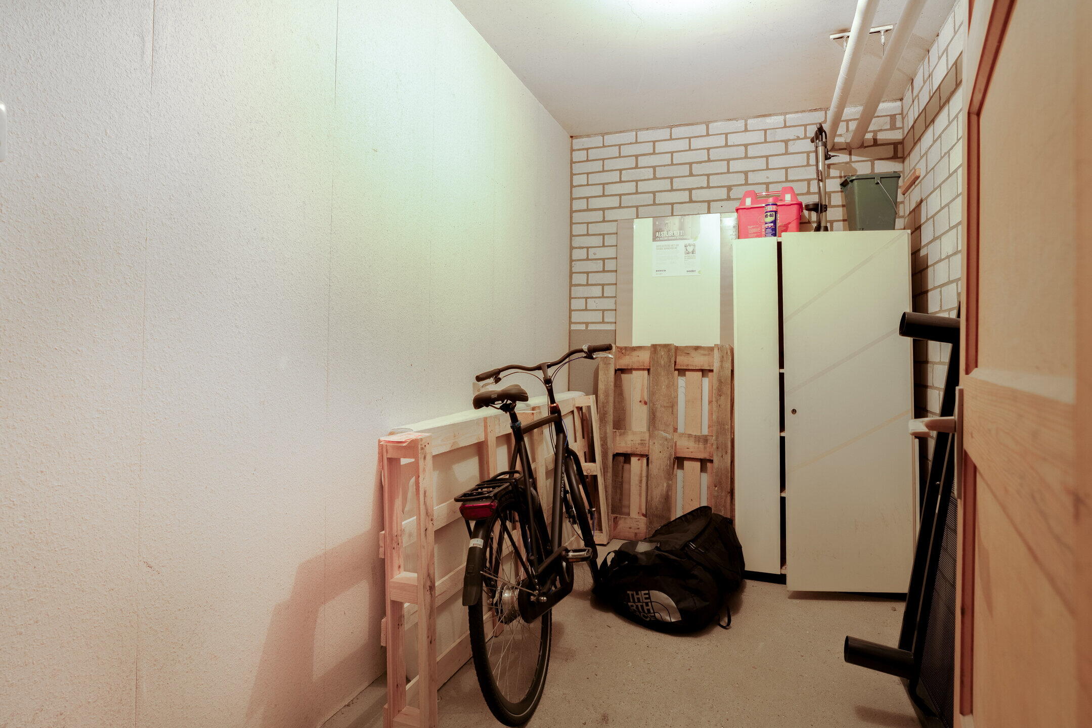 In de onderbouw bevindt zich een afgesloten berging, ideaal voor fietsen en extra opslag.